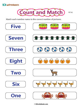 Build skills with these counting objects worksheets featuring adorable ladybugs, playful dolphins, and majestic elephants waiting to be counted! Kids draw lines to connect each number word with the matching set of colorful pictures.