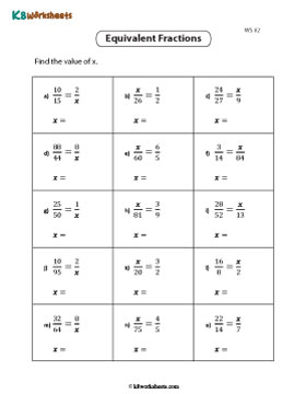 Make headway with our worksheets on equivalent fractions, complete with answer keys. Children practice identifying fractions that look different but represent the same value. They generate equivalent fractions by multiplying or dividing the numerator and denominator by the same number and practice writing the missing numerators and denominators to complete equivalent fractions.
