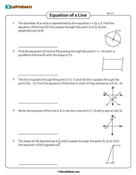 Carefully crafted to align with CCSS, these equation of a line worksheets offer an extensive range of printable exercises. They cover finding slopes and intercepts, analyzing graphs to identify intercepts, deriving equations from graphs, writing equations in point-slope form, and solving word problems, all accompanied by answer keys.