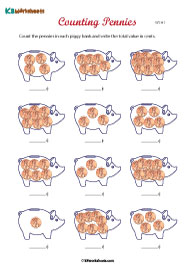Help your kids develop essential monetary skills with these engaging money worksheets! From counting coins like pennies, nickels, dimes, quarters, and half-dollars, to adding $1, $5, and $10 bills up to $100, these printable activities guide children in recognizing and adding U.S. currency with ease. This resource provides a hands-on learning experience in counting money, making change, comparing and ordering money values, and more!