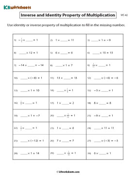 Become proficient in the identity and inverse property of multiplication using these assortments of worksheets. Kids will learn that for every non-zero number, there is another number(reciprocal) that, when multiplied together, gives the product of 1, and any number multiplied by 1 remains unchanged.