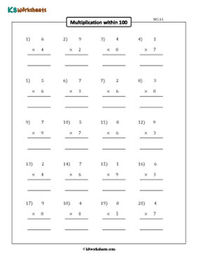 Prepare kids with our free multiplication within 100 worksheets. Exercises such as finding the product in column format, multiplying numbers in horizontal format, writing the missing factors to complete multiplication sentences, identifying and circling the factors that constitute the product, and completing multiplication tables make these printable resources engaging. Evaluate instantly with our answer keys!