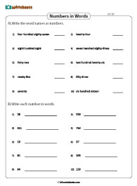 Count on our place value worksheets that offer exercises to identify place values from ones to trillions. Skills include finding the value of the underlined digit, breaking numbers and writing them in expanded form, writing numbers in words, comparing, ordering, rounding them, and much more!