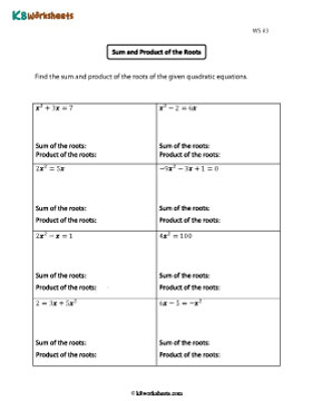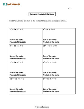 Get ample practice with our Sum and Product of the Roots worksheets! Gain double benefits as these worksheets guide children in finding the sum and product directly from given equations and train them in forming quadratic equations from given roots.